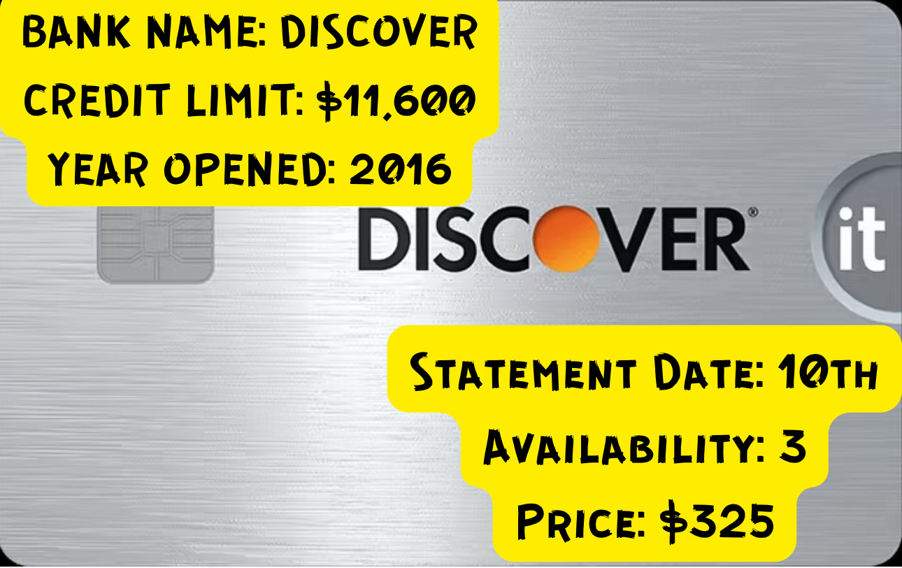 Get added as an Authorized User on a Discover Bank credit card with a $11,600 credit limit, opened in 2016 FOR 6 MONTHS! This tradeline can help improve your credit utilization, payment history, and overall credit score VERY QUICKLY—a powerful tool for building or repairing credit.