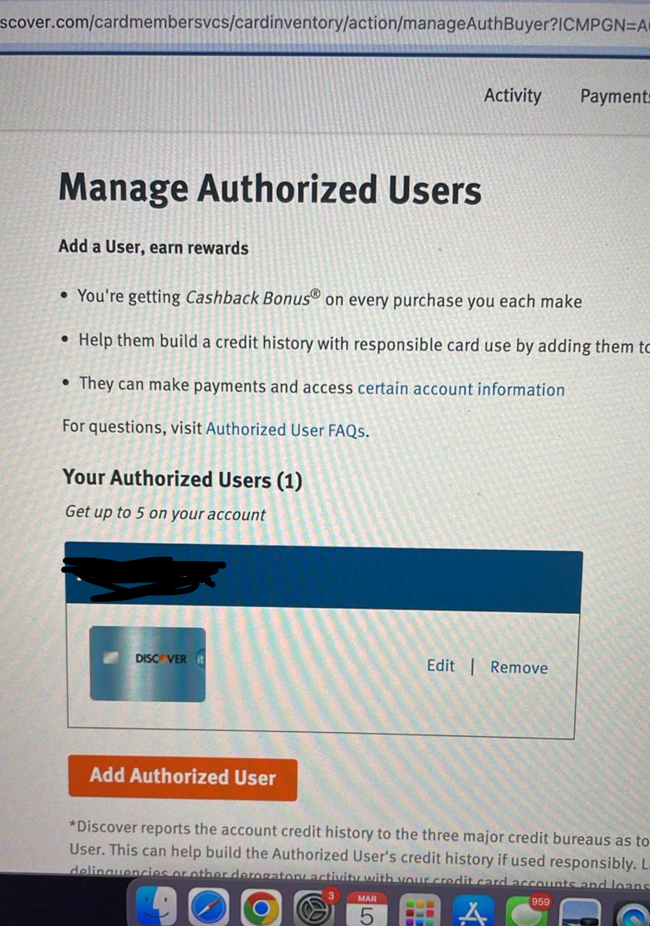 Authorized User Credit Boost – Discover Bank (2016, $11,600 Limit)